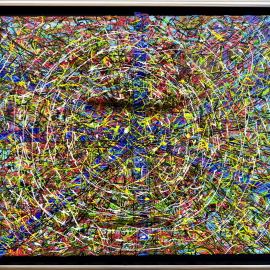 Materialen, mit denen er plastische, mal farbsprühende, mal sehr farbreduzierte Arbeiten schafft. Dessen suggestive Qualitäten lassen die Betrachtenden in das Bild eintauchen und versetzen sie
