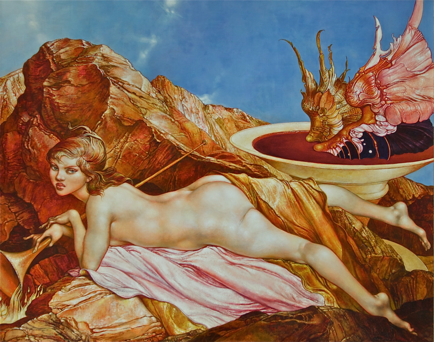 Heinz Zander, Engelsbad, 2003, Ölfarbe auf Hartfaserplatte, 80 x 100 cm